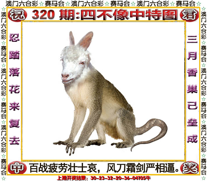 320期:澳门成语四字解平特开?00 解:等闲人物,羊 平特一肖:羊羊羊 |